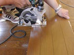 ③今回はH様の要望でフローリングを撤去せず、既存の物の上から張るタイプの物を使用しました。コスト的にも当然抑えられるのでお勧めです。但し、出入り口や収納の扉が内側に開く場合は、ドアが開かなくなるなどの障害が発生するので注意が必要です。 |