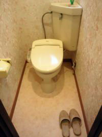 トイレ,壁紙,床CF張り替え、ウォシュレット付便器取り付け工事