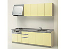 システムキッチンで最も一般的なタイプです。壁側に置いたり、部屋の中央に置いて対面型にもでき、いろいろな使い方ができます。ムダがなく省スペースで、左右に動くだけで作業が出来る上、比較的費用が安価なのが魅力です。間口は、250cm~300cmが主流で、300cmを超えると、動線(動く範囲)が長くなるので、人によっては使いにくいと感じる場合があります。